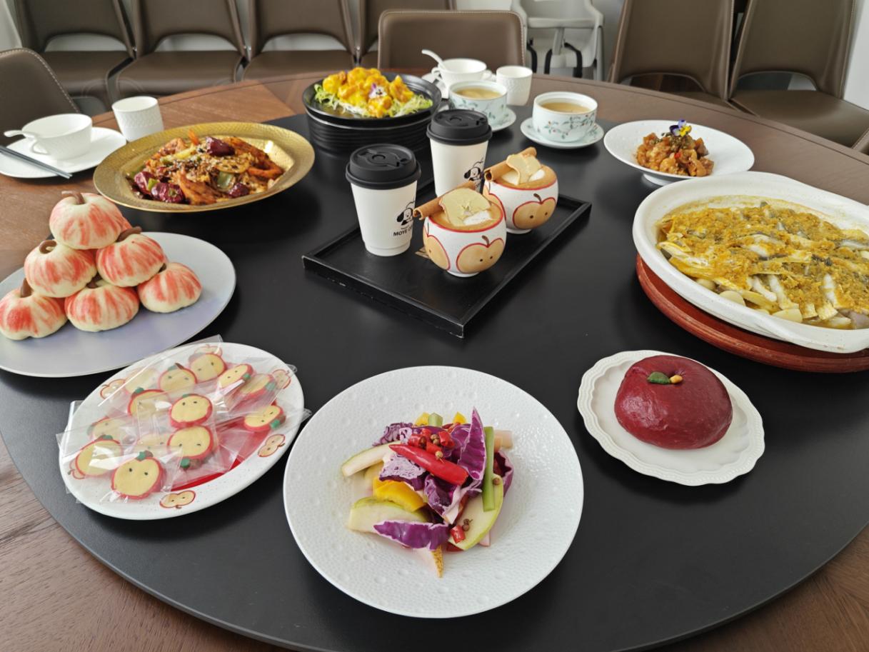 中午:就在1983创意产业园里吃苹果宴,别具一番风味。