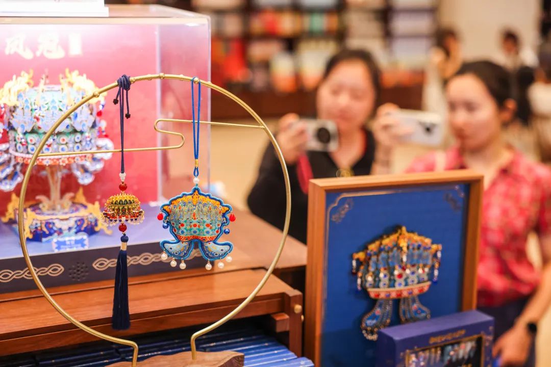 ▲中国国家博物馆凤冠冰箱贴持续热销,至今年7月销量已达200万件,相关文创产品也不断上新。邓伟 摄