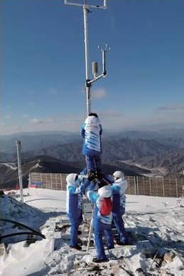 ▲2022年1月15日,冬奥气象服务保障人员在小海坨山维修高山滑雪赛场自动气象站