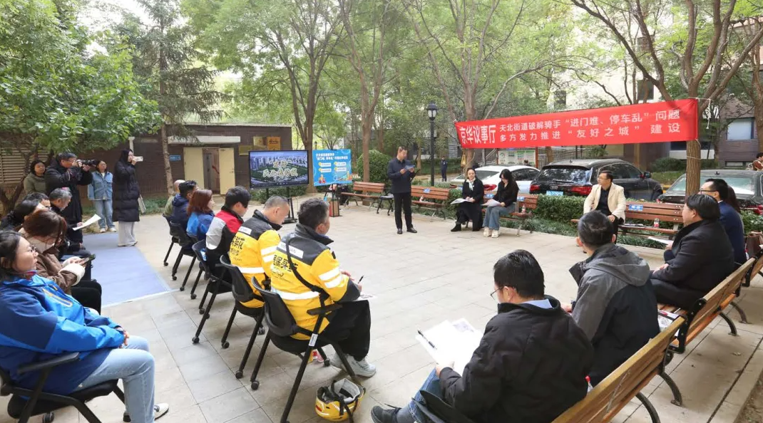 ▲10月23日,昌平区政协在天通苑北街道三社区开展“京华议事厅”协商活动:破解骑手“进门难、停车乱”问题,多方发力推进“友好之城”建设