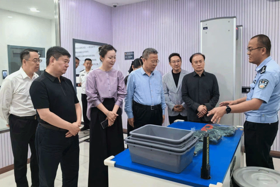 ▲田晶鑫(左三)随同市政协调研组到海淀分局办案中心调研