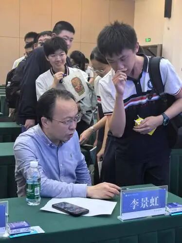 ▲李景虹(左一)和同学们交流