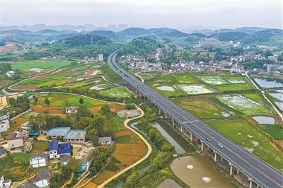 ▲贵州省黔西市雨朵镇乡村青青麦苗铺展大地。周训超 摄