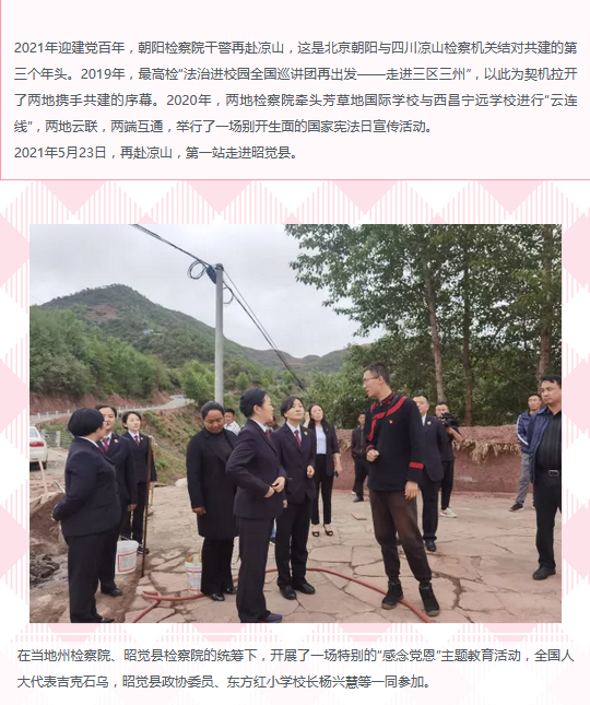 2021年迎建党百年,朝阳检察院干警再赴凉山,第一站走进昭觉县,这是北京朝阳与四川凉山检察机关结对共建的第三个年头。